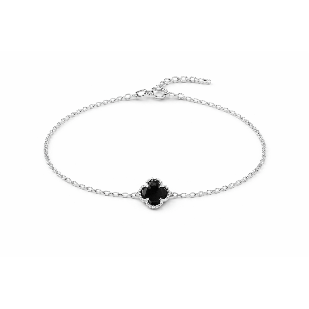 Srebrna narukvica sa crnim detelinastim kamenom – elegantna i sofisticirana